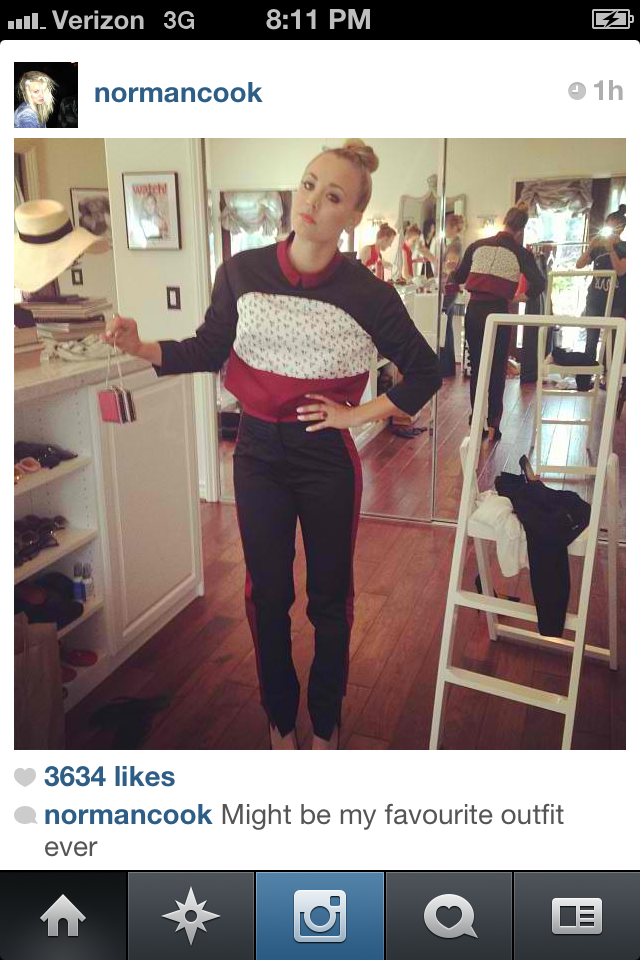 I apologize for the scarcity that is my writing and inspiration that is needed for it. Lately, I have been doing a-lot of work for journalism and reporting really throws off and cuts off my creative brain flow. It wasn’t until I was simultaneously on Instagram and watching The Big Bang Theory. Which by the way.. coolest opener for a t.v. show in a long time, don’t ya think? Anyways, I realized how much I truly love Kaley Cuoco, and I would probably say she is one of my favorite actresses. The evidence just started piling up, her acting in 8 Simple Rules, Crimes of Fashion, and now The Big Bang Theory and those random Priceline commercials.. and the best part is her amazingly entertaining instagram. Not too braggy, almost too many pictures of dogs, with just the right amount of closet. I love her style, and the incredible way she can put her hair up in this extremely messy tiny bun and look perfectly not put together. Kind of thing everyone wishes they could do every day but just fail at. I pulled pictures from her Instagram and Amy Davidson’s, her co-star from 8 Simple Rules and adorably still her good friend or so it looks. The point of this post is really more for you to try and appreciate Kaley Cuoco as much as I do, no longer as an underrated celebrity and now as a fabulous blonde bombshell. Also, not sure who Norman Cook is, but I’d love to find out! Tell us more, Kaley-er, Norman!